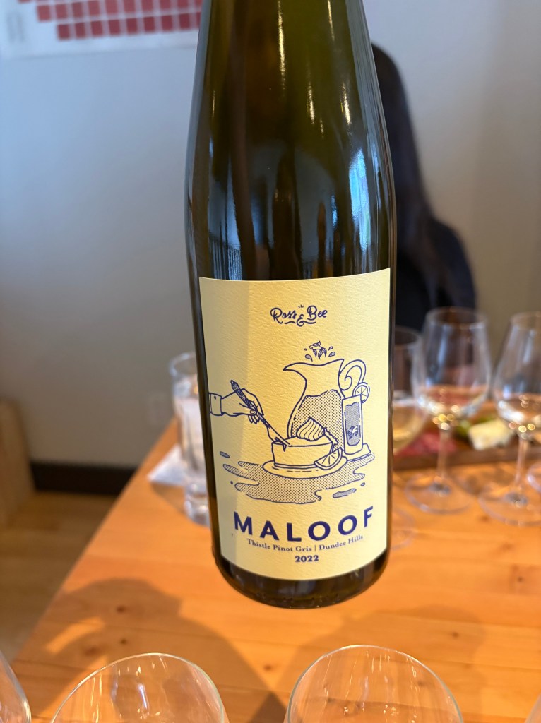 The Maloof Thistle Pinot Gris ($40, discount $36) was just right for me. Erik could taste both spices, such as cinnamon and cardamom, as well as the iced tea and lemon. The grapes grow on ‘Jory soil’, found in Oregon. The soil is volcanic, which is considered ideal for growing Pinot Noir grapes. I picked up a bottle for my in-laws, Turned and Dave.