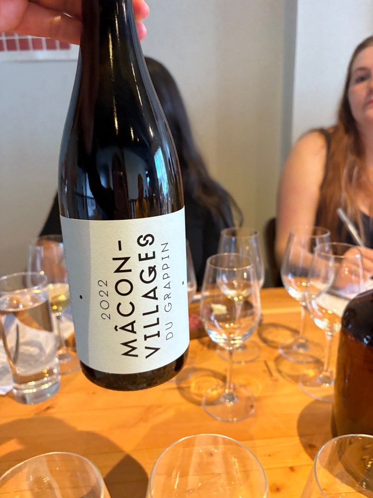 The fourth wine we tasted was Le Grappin Macon Villages ($50). The smell was lovely. Erik noted that this was a white burgundy, an excellent value for such a bright and fresh wine. I had trouble describing what I could taste.