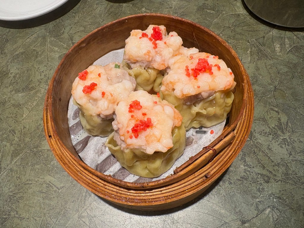 The siu mai was enormous, like a meatball topped with a massive crowning of shrimp and tobiko. Unfortunately, the wrapper fell apart when I picked it up, and the filling leaned a little dry. Still, very tasty.