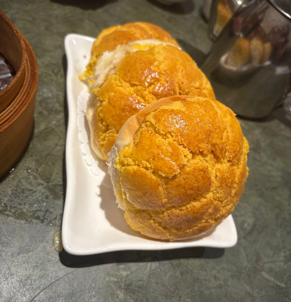 The BBQ bun was huge, but too doughy, like it wasn’t baked long enough. The filling wasn’t too sweet, which I prefer. I brought them to work the next day and baked them in the toaster, which really improved the texture.