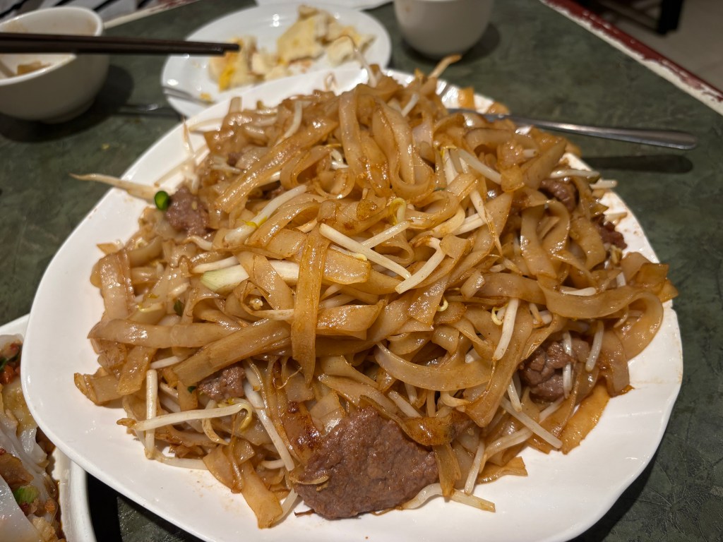 The stir-fried rice noodles with beef were missing that smoky wok hei aroma, but the bright white bean sprouts added a refreshing crunch against the soft beef slices and slick noodles. Interestingly, when Chew Steel reheated the leftovers the next day, he thought they tasted even better.