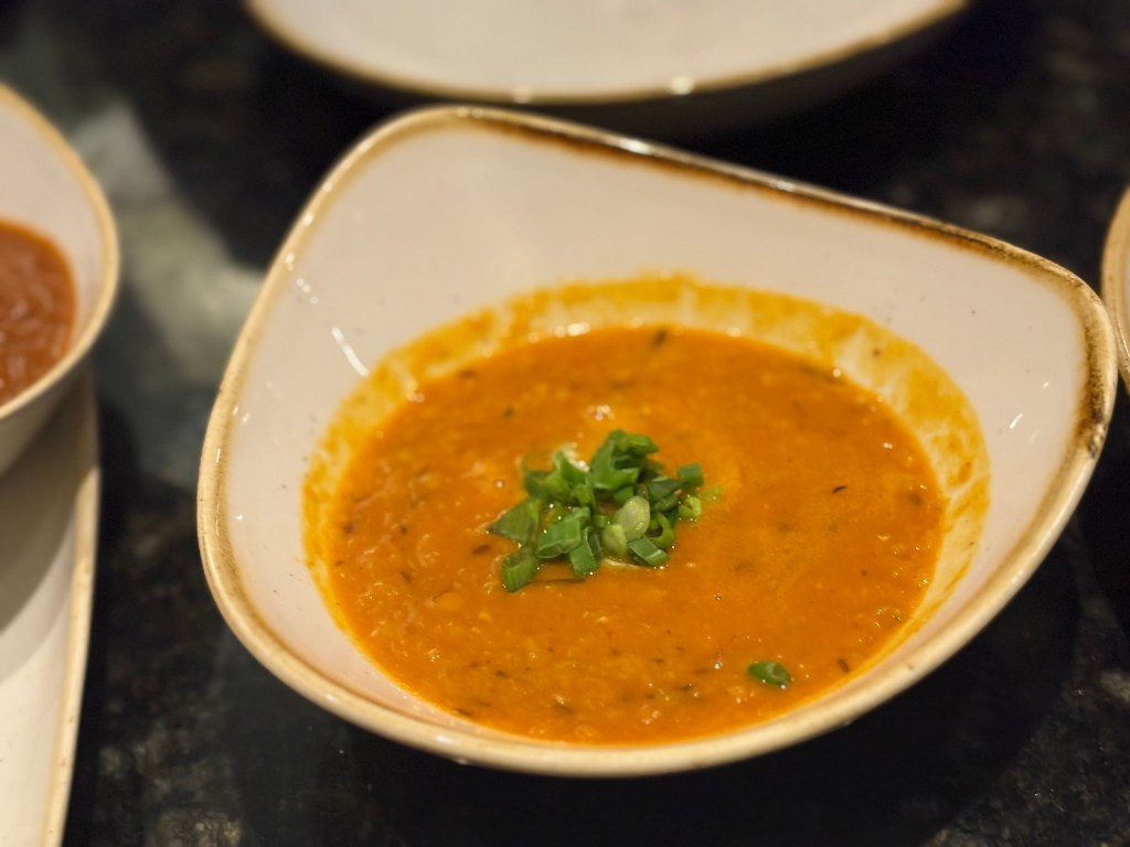 Our first round of drinks were nice, but it the second round, based on our server’s recommendation, was the winner. Tequila Margarita ($17, plus an upcharge for Don Fulano Blanco). I love a good margarita, but this one? Pure bliss. I didn’t see the bill, but it tasted like it was worth every nickel. More complex than a basic margarita but still dangerously easy to sip, with tropical vibes and a hint of grapefruit.