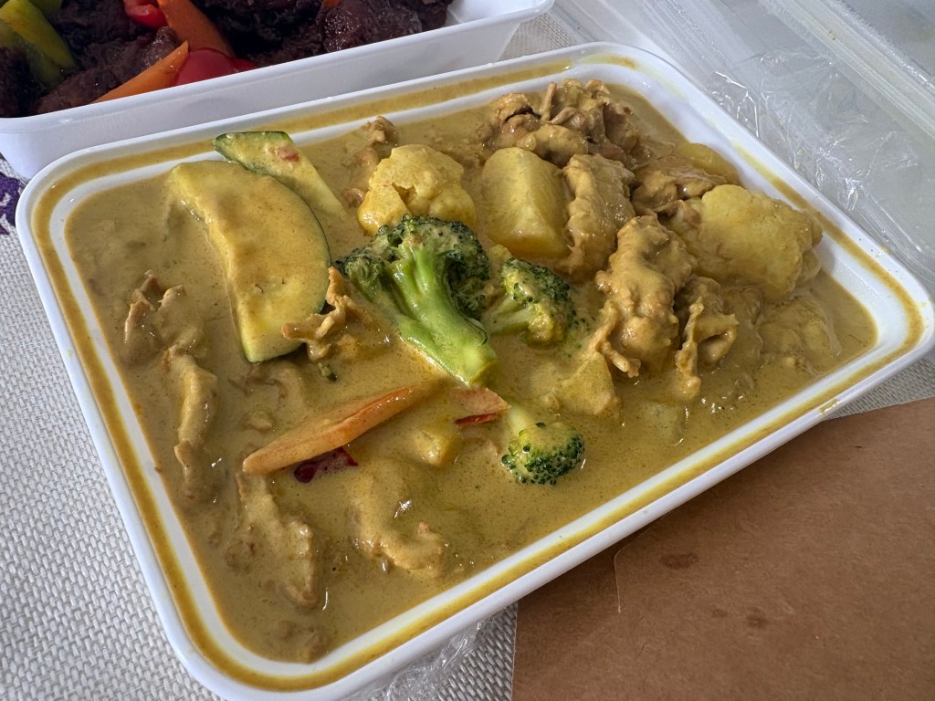 For me, the standouts were the noodles and the curry chicken. I also liked how the vegetables in all the dishes still had a clean bite. It’s no small feat to time them so precisely, especially for takeout. Even the snow peas snapped lightly, with a touch of sweetness.