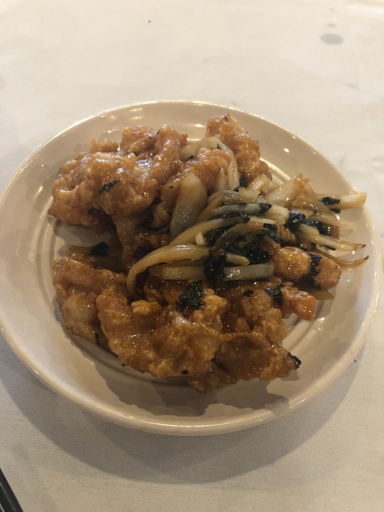 The chow mein had scallops, squid, prawns, and glossy bok choy, all intermingled with a clear sauce. The noodles on the side of the plate were crispy, whereas the middle ones were more soaked through. I wanted a little salt or MSG to liven up the flavouring. When Chew Steel ate it later that afternoon, he disagreed, saying it was delicious, though the noodles were very saucy.