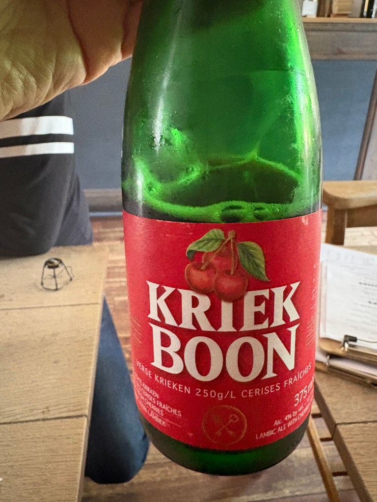 The bartender knows his craft, not just about the history of the brewery or the style of beer making, but also about current anecdotes related to certain bottles. I told him about a delicious raspberry I tried at the Broad Chare. He recommended I try Timmermans Black Pepper Lambicus (£6.80), a bubbly Belgian beer. Chew Steel ordered Kriek Boon (£6).