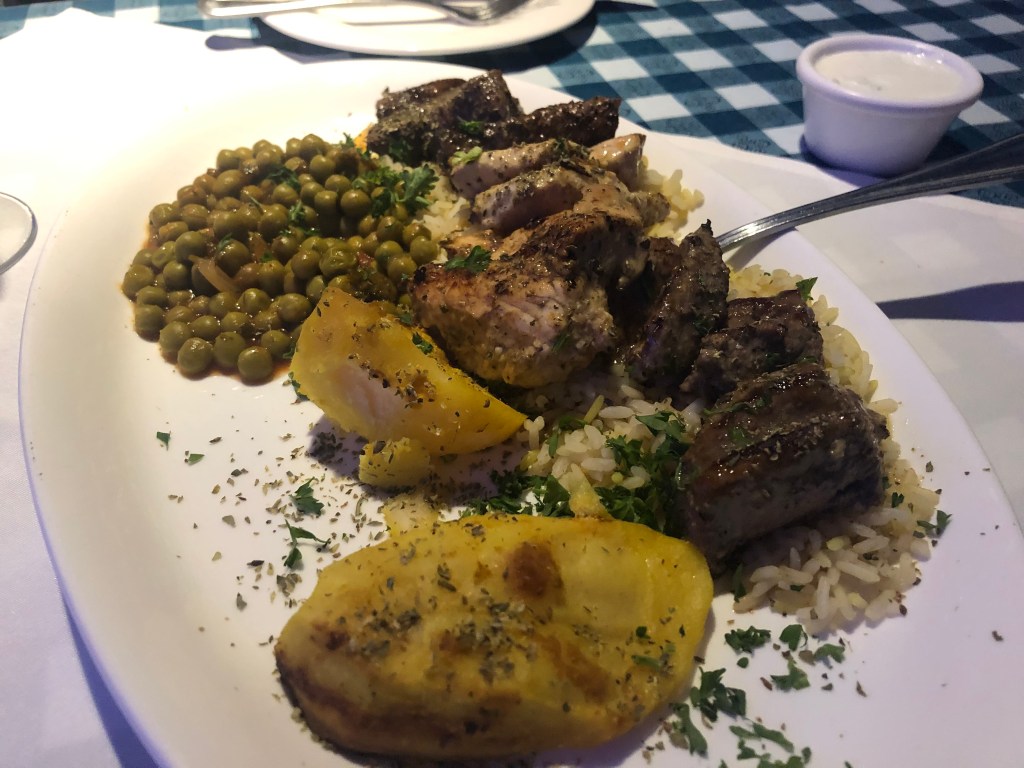The mixed grill is a winner! The platter contained two pieces of chicken, lamb, and beef, a pilaf of fragrant saucy rice, fluffy oven-roasted lemon potatoes, and a basket of pita bread with tzatziki. The meats are simply seasoned, which allows the natural juices of the chicken, beef and lamb to shine. Of the three types of meat, the lamb was my favourite because of its tenderness and delicate, grassy flavour. Lamb done right is so good. Next time we visit, I want to try the roast lamb.