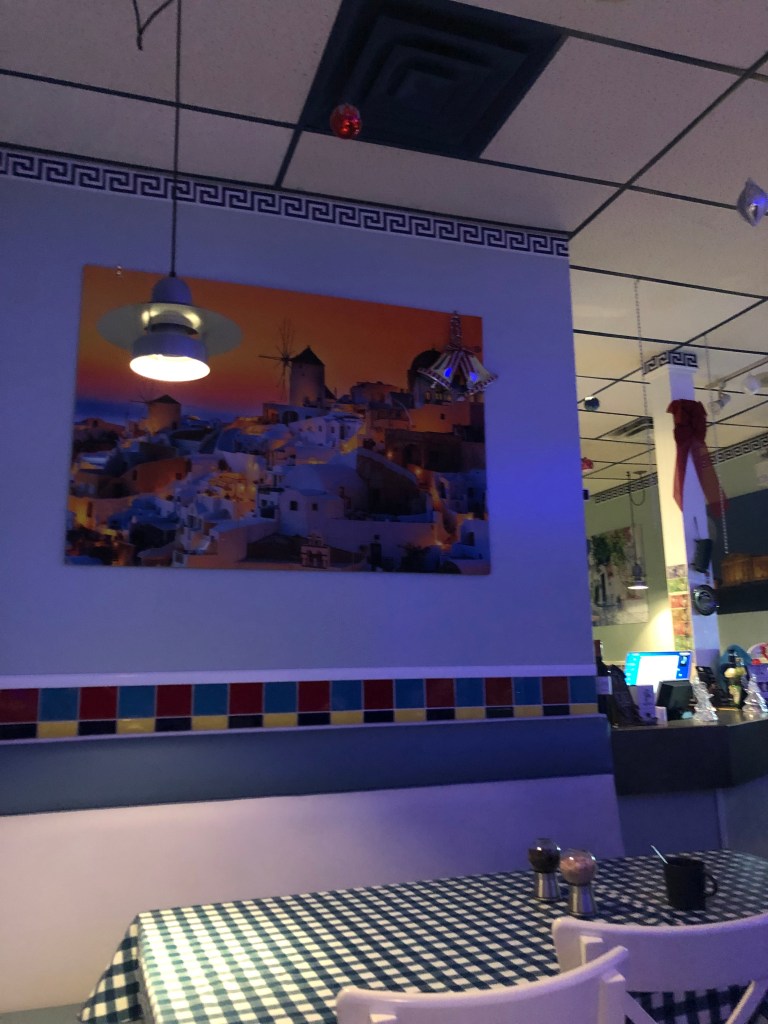 The coziness of The Greek Corner reminds me of Greece. The small restaurant was dark, illuminated by the blue string of Christmas lights and hazy white pot lights. The music matched the service – warm, hospitable and upbeat.