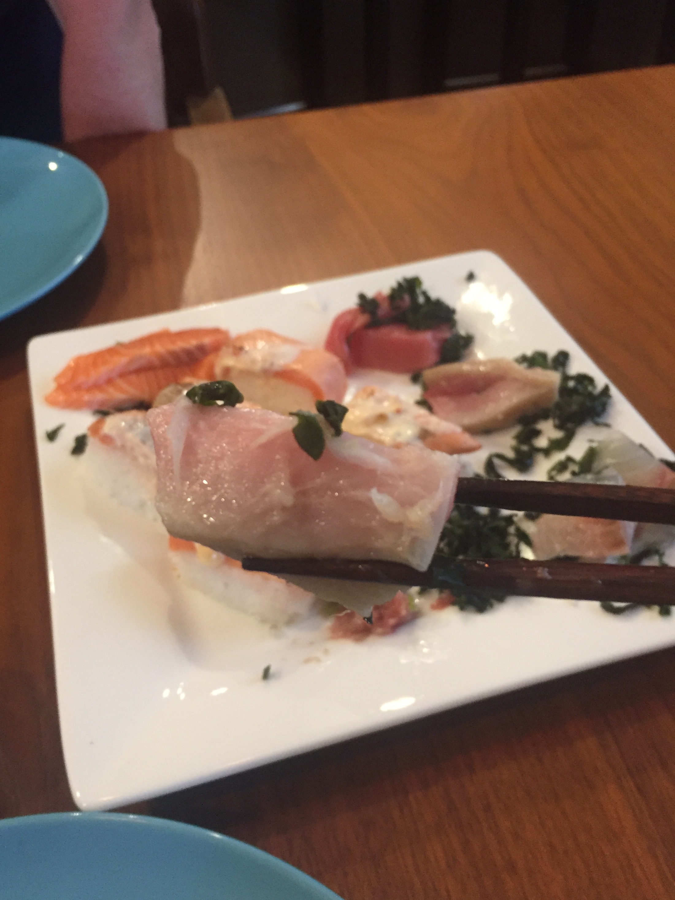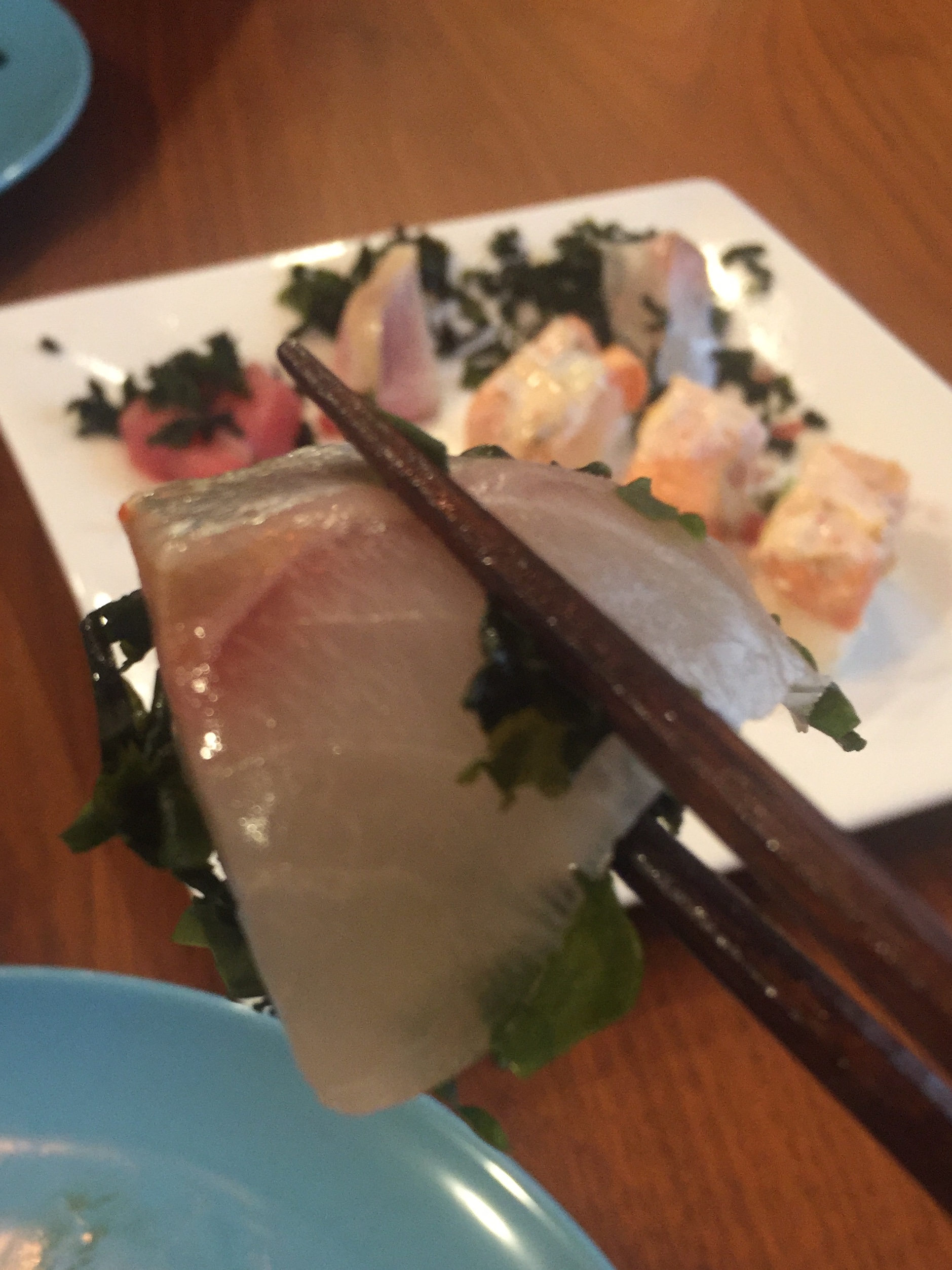Boss Lady loved the octopus tataki and the marinated squid. She even ate the greens, noting how fresh the garnishes were. Asians love their vegetables. The kids pointed out that the octopus was both chewy and crunchy.