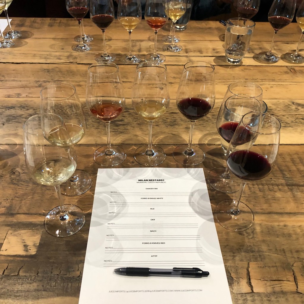 I noticed that our fervent host, Juicee Import co-owner Erik Mercier, has a formula for each class. He likes to begin by delving into the background of each winemaker’s ethos, the sustainability of their farms, and winemaking philosophy. In the case of Milan Nestarec, a winemaker in the Czech Republic, he also spun an intriguing history lesson.